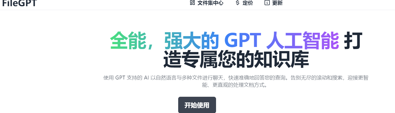 FileGPT功能 FileGPT是一种高级 AI 工具,允许用户使用自然语言查询与各种类型的文件(包括文档、音频、视频、YouTube 和网页)进行交互。它可以快速准确地响应查询,使文件管理和信息检索更加高效和直观。 主要特征: 多格式支持:与 PDF、TXT、DOC、音频、YouTube 视频、网页等进行交互。 长文本支持:轻松处理大文件和冗长的文本。 智能内容解析:从手写文档中提取文本并分析音频和视频内容。 跨源查询:一次搜索查询多个文件,获取综合结果。 经济高效的解决方案:使用经济实惠的人工智能工具升级您的工作流程。 用例: 处理各种文件类型(如文档、音频和视频)的专业人士正在寻求一种更高效、更直观的方式来与其内容进行交互。 处理大型文档或大量研究材料的研究人员或学生正在寻找一种能够处理长文本并提供快速访问相关信息的工具。 需要从手写文档中提取文本或分析音频和视频内容以进行转录或分析的内容创建者或多媒体专业人员。 经常在多个文件和来源中搜索和查询信息,寻求简化和全面的搜索体验的个人。 任何希望通过利用 AI 驱动的技术来增强工作流程和提高工作效率而又不花大钱的人。 FileGPT彻底改变了您处理文件、音频、视频、YouTube 和网页的方式。