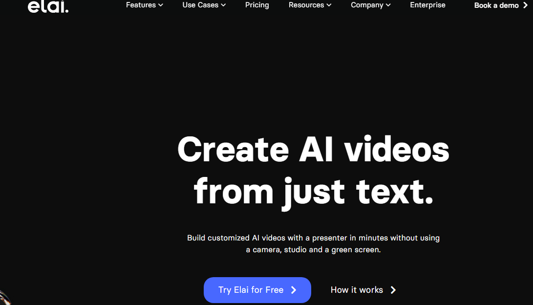 Elai io功能 Elai.io是一个人工智能驱动的视频生成平台,旨在使用数字化身创建个性化视频。主要特点和优势包括: 多样化的头像:超过 25 个用于视频创作的数字头像 GPT-3 集成:使用高级 AI 从头开始创建脚本 文章到视频转换器:将博客文章转换为引人入胜的视频 语音克隆:深度定制,打造个性化触感 Elai.io 的用例涵盖各个行业: 学习与发展:使用 AI 生成的视频增强培训材料 营销:为产品和服务创建引人入胜的促销内容 电子商务:通过个性化视频展示产品,以更好地吸引客户 Elai.io 提供免费试用版,可为大规模 AI 视频生成提供轻松的解决方案,以满足全球企业的需求。