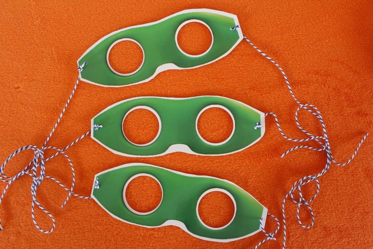 打印第二组蒙版。使用打孔器和绳子创造超级为什么!供您的客人在生日聚会照相亭佩戴的面具或装在他们喜欢的袋子里带回家。