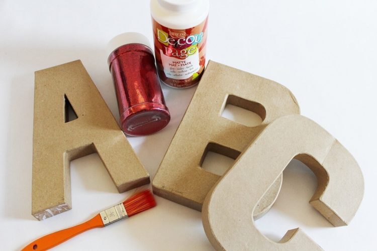 使用画笔在其中一个纸质字母上涂上大量的剪纸胶。