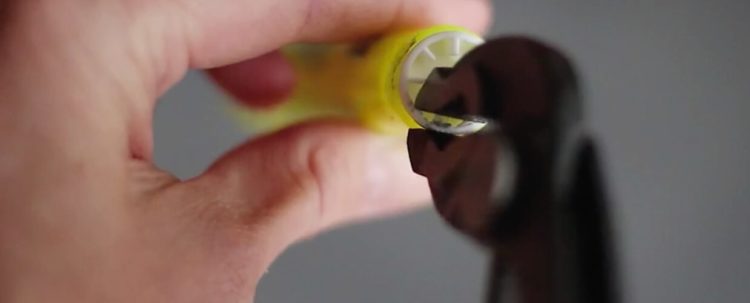 打开荧光笔的背面,拉出里面浸透墨水的毛毡。
