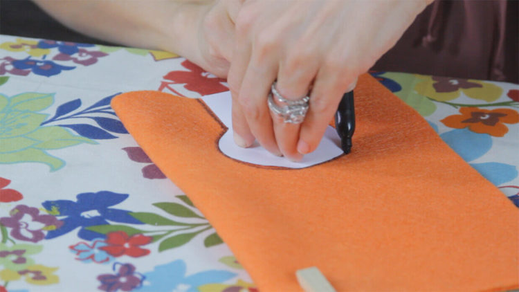 使用模板从剩余的橙色毛毡上剪出耳朵和手。