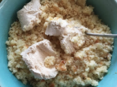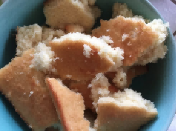 将蛋糕完全冷却,然后用指尖将其弄碎放入碗中。